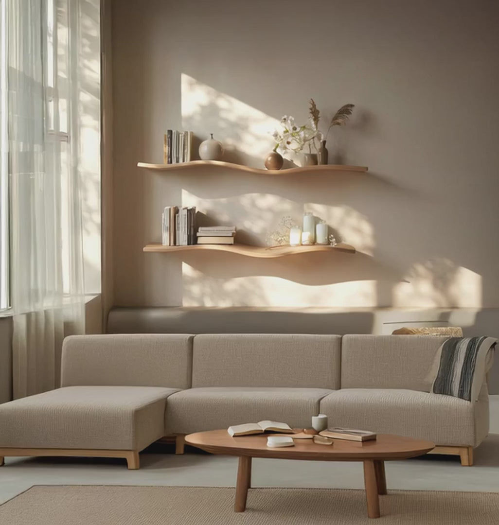 Handcrafted Wavy Rustic Wooden Shelf – Mid-Century Bookcase, Home Décor & Gift